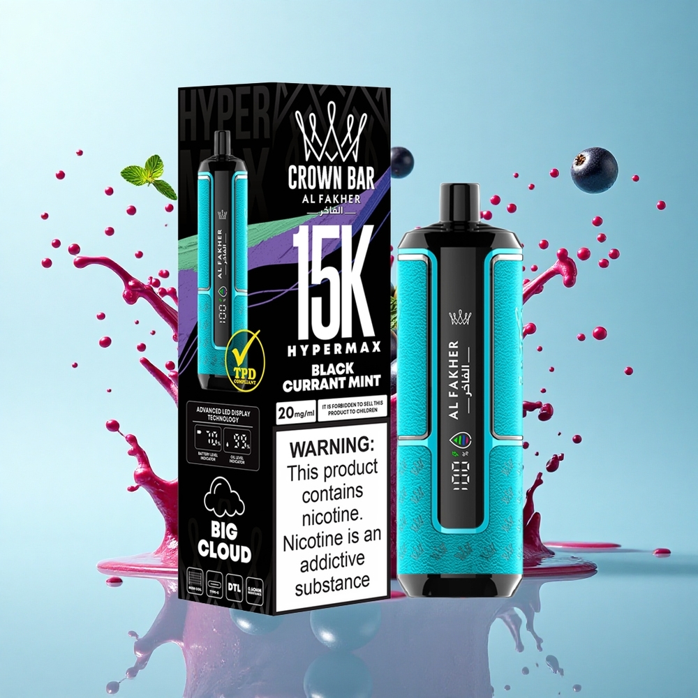 Открийте върховата мощ и удобство с Al Fakher Crown Bar 15K Hypermax Еднократна вейп Kit – идеалният избор за любителите на интензивен vaping опит!