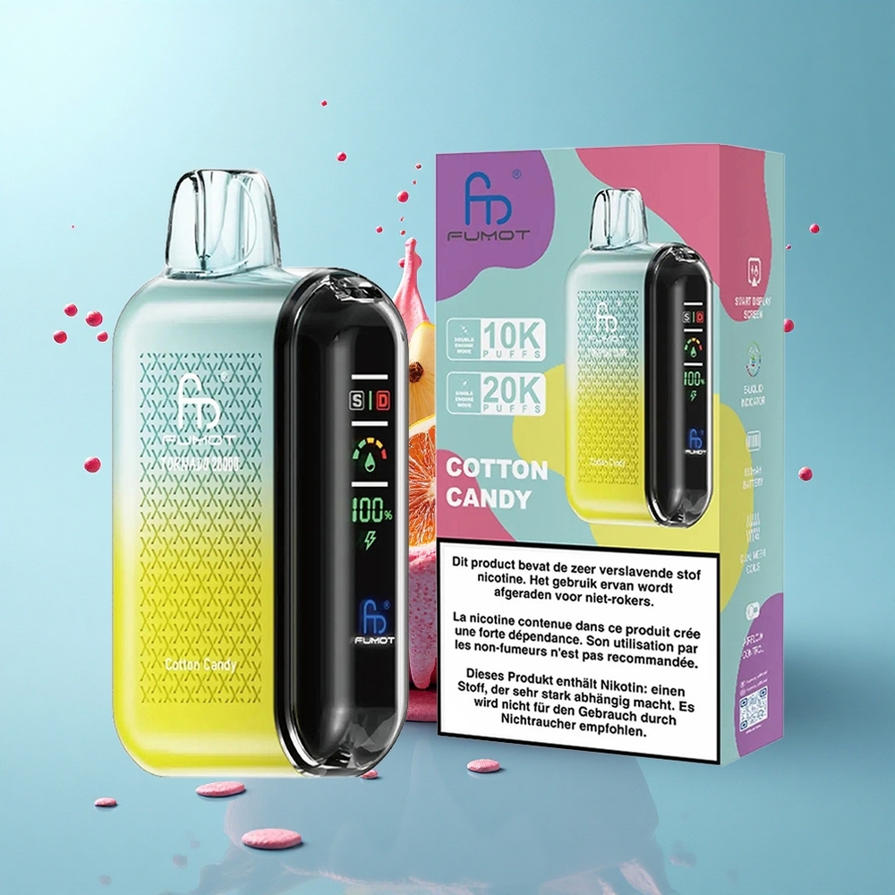 Fumot Tornado 20000 Puffs Памучна захар Dual Mesh Интелигентен дисплей
