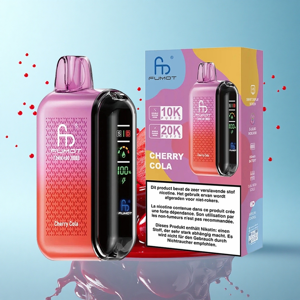 Fumot Tornado 20000 Puffs ви предлага незабравимо преживяване с богат вкус и гладка пара. Благодарение на Dual Mesh Coil всяка затяжка е по-интензивна и задоволяваща. Smart Display и Airflow Control ви дават пълен контрол върху вашия сеанс. Перфектният избор за Bulgaria wholesalers, които търсят качество и надеждност.