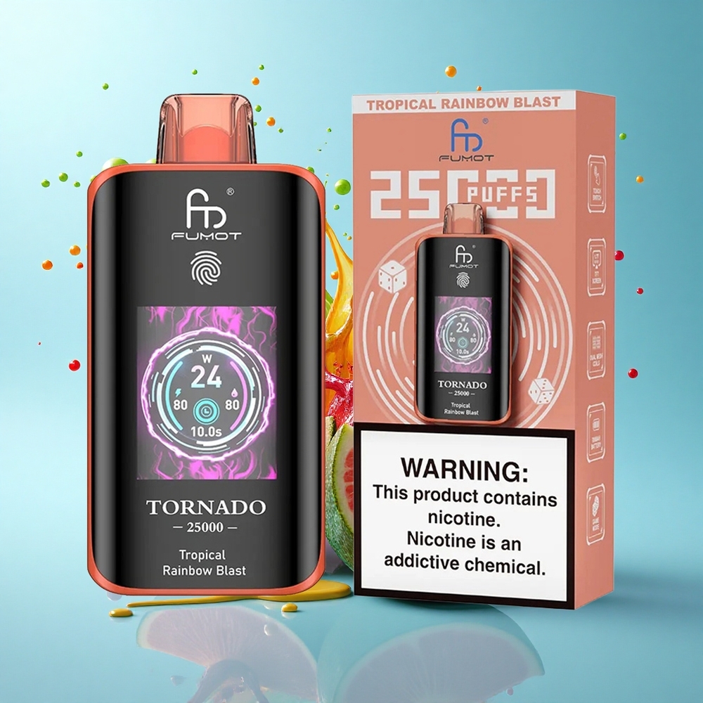 С Fumot Tornado 25000 Puffs ще се наслаждавате на плавни и наситени облаци с всяко вдишване. Перфектният избор за Bulgaria wholesalers, този модел обединява висококачествен дизайн и иновативни технологии. Независимо дали сте начинаещ или опитен вейпър, Tornado ще ви впечатли с издръжливостта и интензивността си.